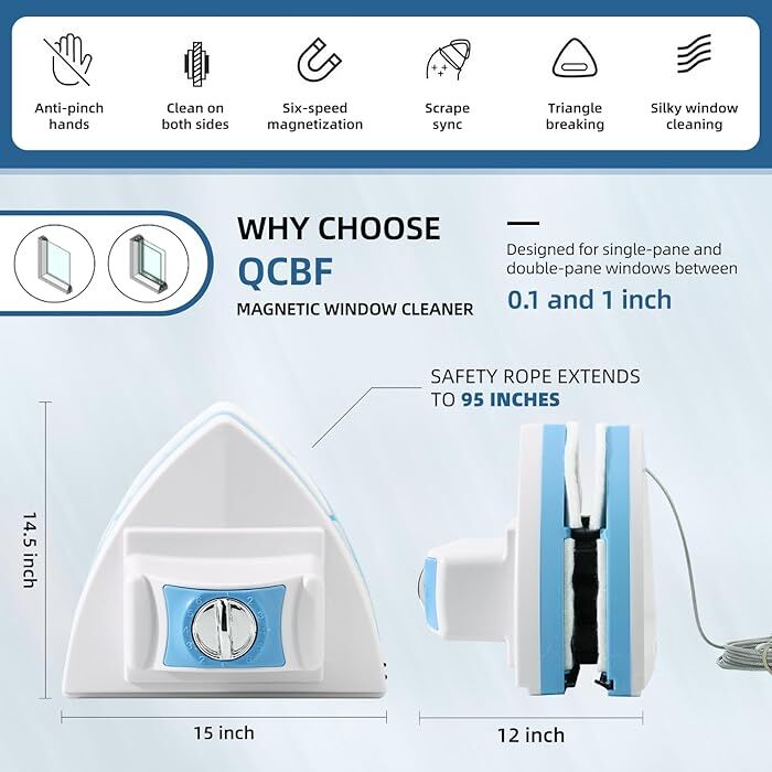 Upgraded magnetic core delivers strong, stable attraction that keeps the cleaner tightly attached to the glass — visible, reliable magnetic force you can trust.