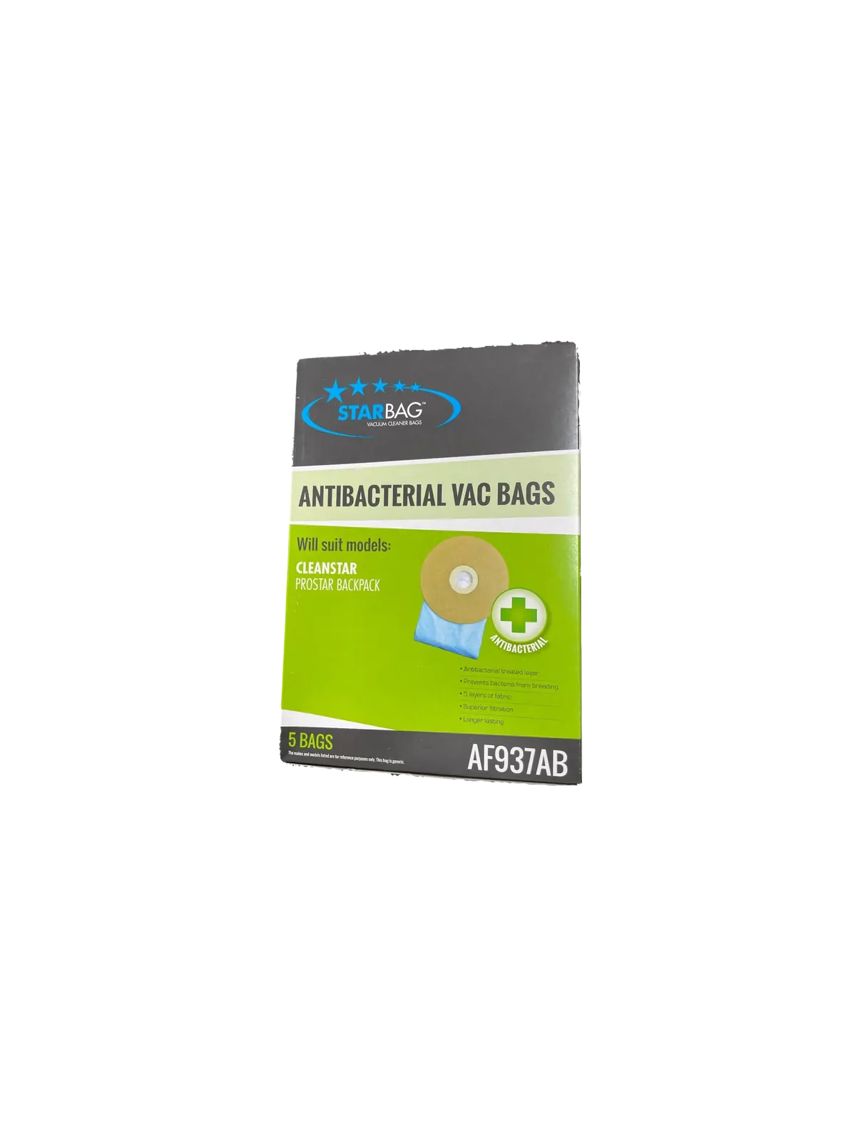 Specifications of Starbag 5pk Antibacterial Vacuum bags to suit Prostar, Eurostar, and VBP5000 Backpack vacuum cleaners:
