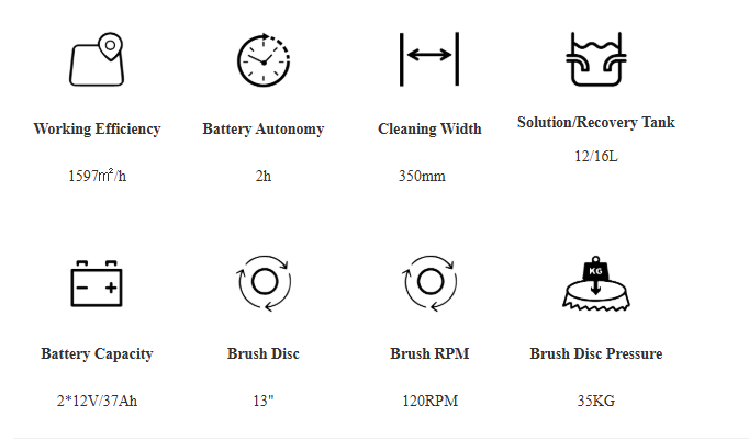 Specifications of TVX T16B Walk-behind Floor Scrubber Dryer: